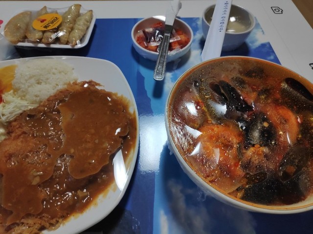 오늘 저녁은 돈까스와 짬뽕이요 ㅎ짬뽕이 얼큰하고 맛나네요 ^^
