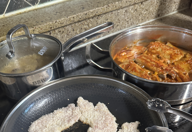 오늘의 저녁메뉴는 갈치조림과 치킨까스