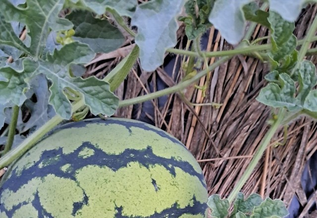 텃밭에심은수박이달렸어요