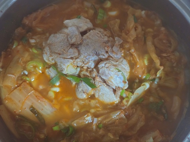 돼지고기 드음뿍 넣고 김치찌개했어요, 고기는 사랑입니다~^^