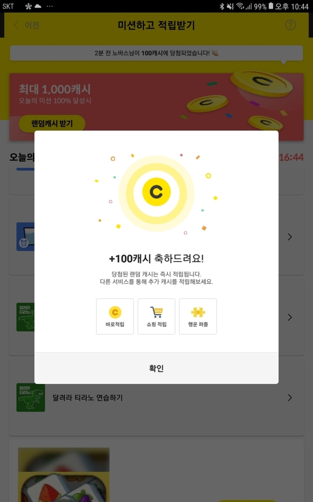간만에100캐시당첨