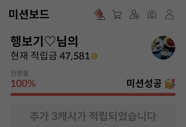캐시피드 미션 완료