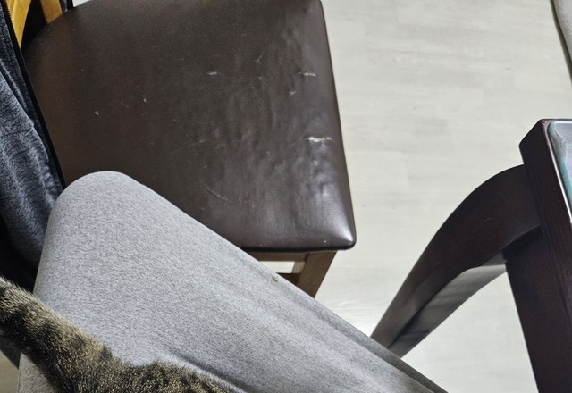 식탁의자에 올라온 얄롱이발꾸락대 발꾸락