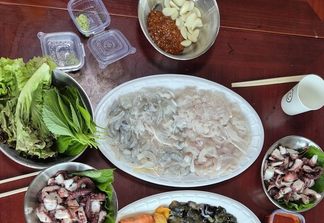 반찬.찰밧.미역극 얻어왔어요