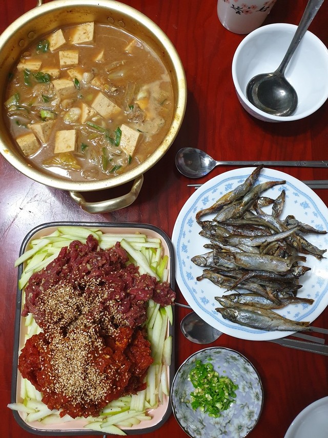 이밤에 어울리는 육회와열빙어 국물은 한우된장끝~~