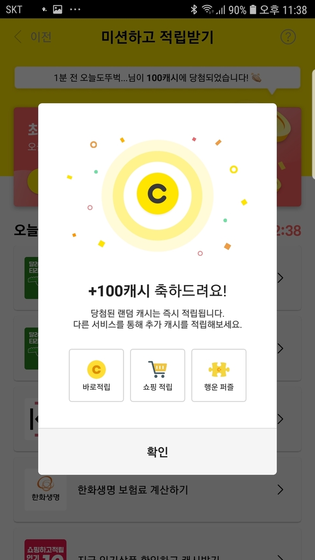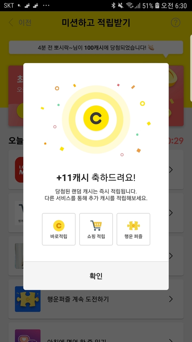 100캐시 당첨되어 기분좋습니다. 모두의 참여로 코로나도 이겨냅시다~