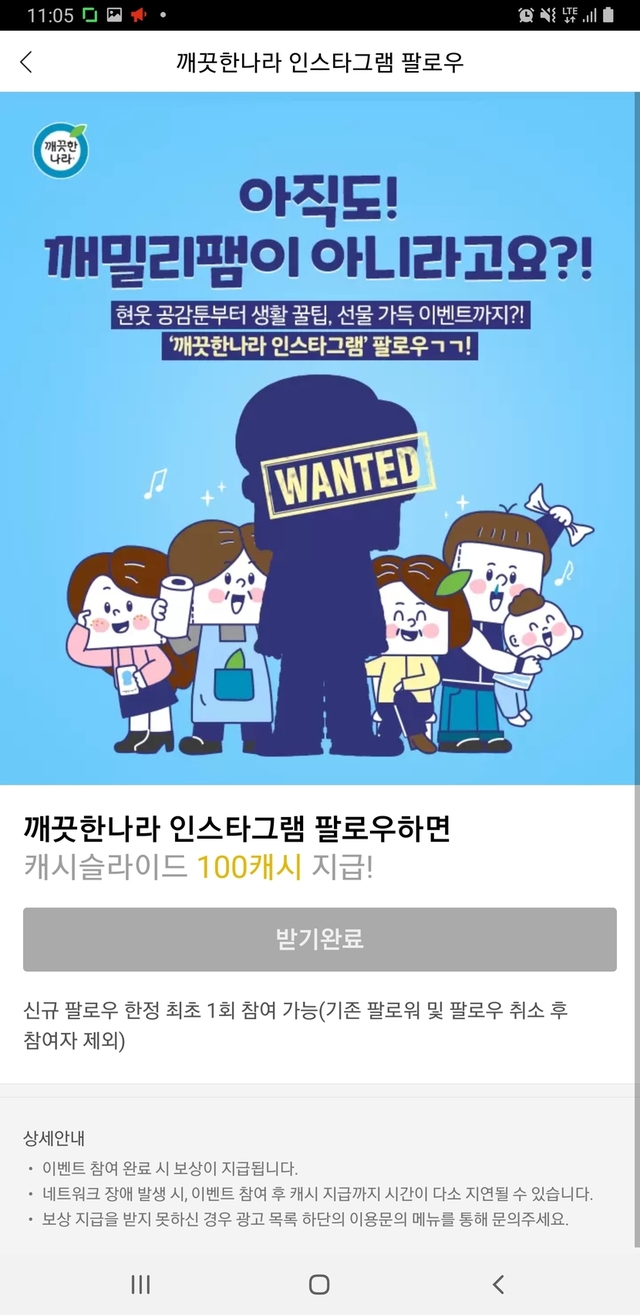 인스타그램 팔로우하고 캐시슬라이드 100캐시 적립하세요~^^