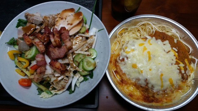 저녁으로..냉동 파스타랑 샐러드 먹었어요~