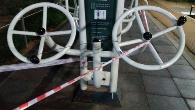 수도권은 4단계라..공원에 운동기구며 벤치도..다 묶여있네요..언제쯤 ..일상생활로 돌아갈런지..