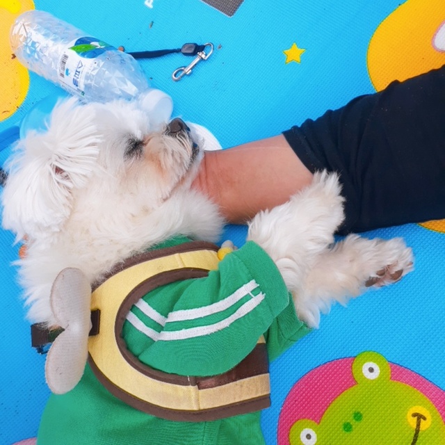 🐕울 콩이도 일모자쓰고 일해용~~ㅎㅎ쉴시간에는 시원한 그늘에서 같이 쉬고 간식먹을 시간에는 같이 간식도 먹고~🐶🌳