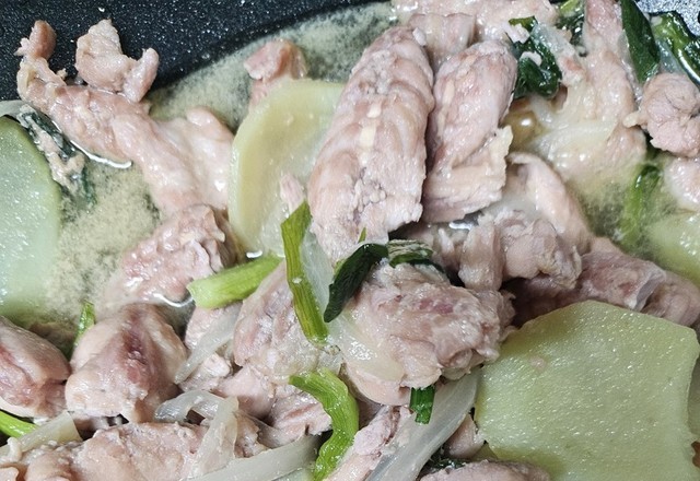냉동실에 닭목살이 있길래 한번 볶아봤습니다.야채도 별로 없어서 있는데로ㅎㅎ양파 쪽파 감자만 넣었네요