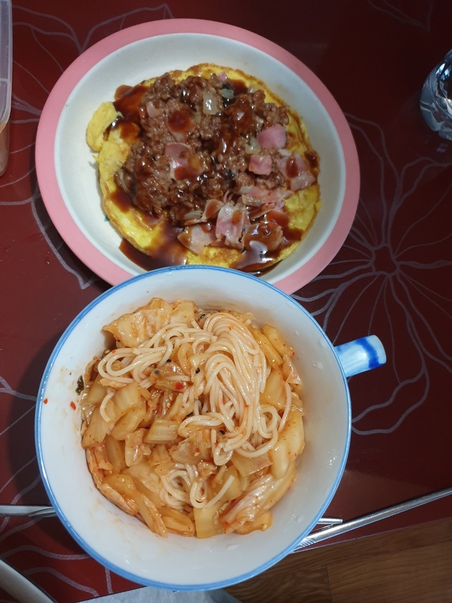 무엇이든 잘 먹던 우리 아들.4살이 되더니 편식 아닌 편식을 시작했나봐요.먹기 싫다고 하는 게 많아졌고,마음에 드는 음식이 없으면 밥을 거의 다 남기네요.😂😂게다가 콧물감기로 열이 났던 데다가콧물이 꽉차서 입맛도 떨어졌는지... ㅜㅜ요 며칠간 먹는 게 영 시원찮더라고요.그래서 입맛 돋구는 게 뭐가 있을까 고민하다김치 송송 썰어서 간장과, 설탕, 깨소금, 참기름을 넣어비빔국수🍜🍜🍜를 만들어 줬답니다.최대한 맵지 않게 했지만, 안먹을지도 몰라서베이컨, 양파, 당근을 넣어 오므라이스도 만들고요.밥이 보이는 걸 좋아해서 계란은 밑에 깔기