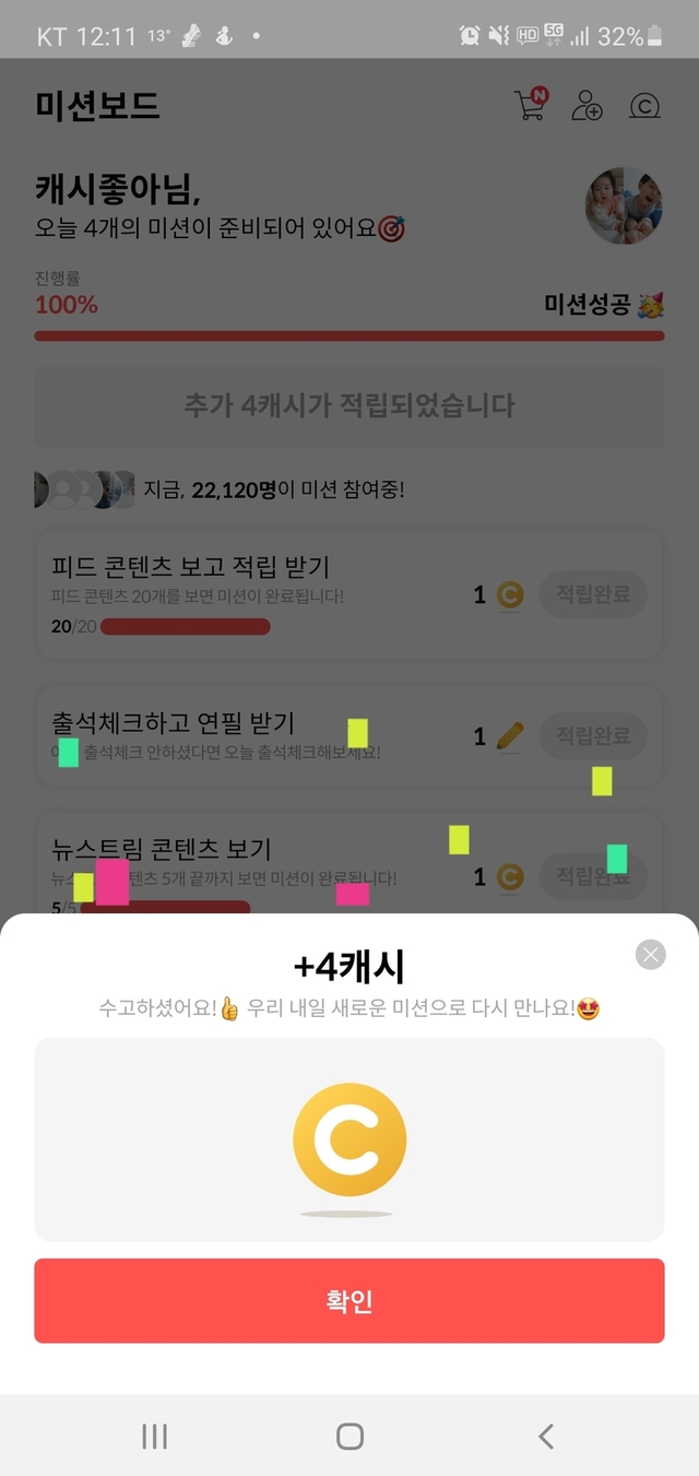 아무리 캐시피드를 열심히 해도 최대가 14캐시였는데,오늘에서야 드디어!!!100캐시 당첨이네요.다른 분들은 심심치않게 100캐시 글을 올리셨지만,제게는 처음 있는 일이라~~~감격했어요. ㅎㅎㅎㅎ 😊😊😊😊
