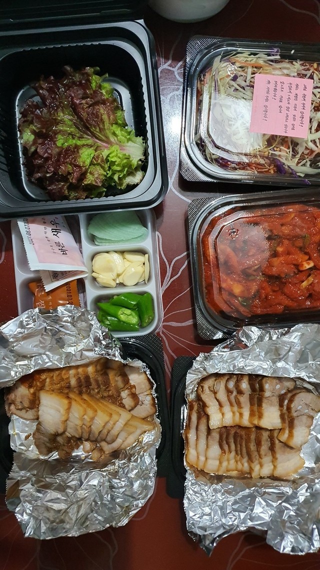 가을이 아닌데 식욕이 폭발하는 요즘입니다.🥩🍗🍖🍱🥘🥗🥙🍔배고파도 뱃살을 생각하며 최대한 참으려 했지만,배고픔이라는 욕망이 이성을 이기고야 말았지요.😅😅😅그래서!야식으로 부드러운 보쌈을 주문했답니다.막국수는 이벤트로 서비스 주신다해서 추가주문 안했지요~^^먹기전에 한 컷 찍고 폭풍흡입~~~ 아주 깨끗하게 비웠답니다.막국수는 새콩달콤하니 입맛을 돋구었고,보쌈은 잡내도 없고 부드럽기까지해서 열심히 먹어댔네요.지금이요? 포만감으로 기분이 좋네요. ㅎㅎㅎ