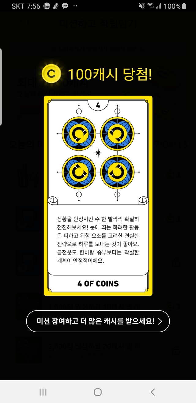 여기서도 100캐시가 나오네요