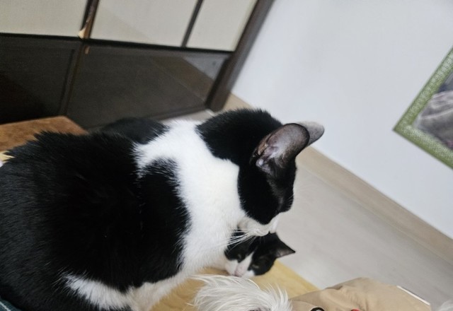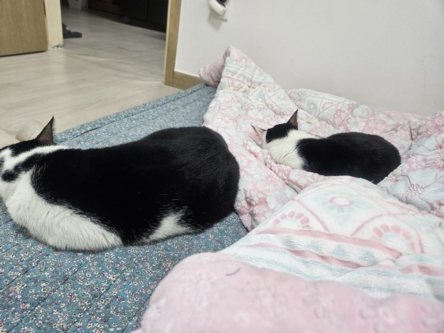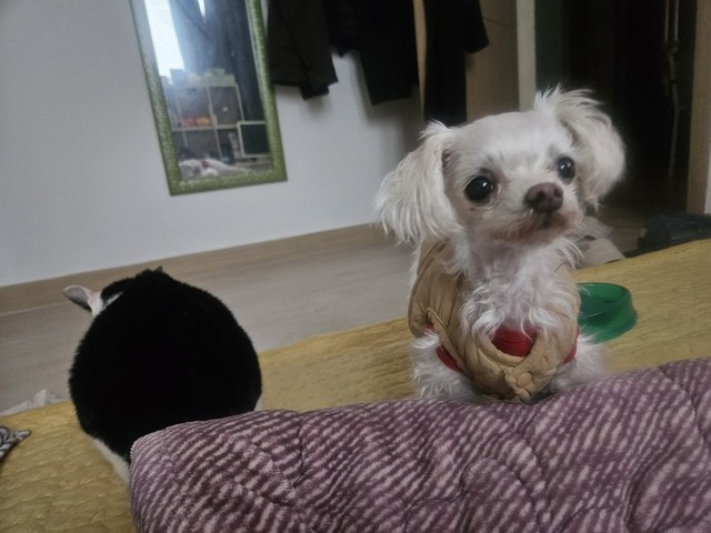 한동안 큰방에 안들오던 나나가요즘가끔씩 들어오는데은근히 해피를 견주내요나나야그러다가 큰방출입못할라해피언니를 보호해야지사이좋게 잘지내렴 달이엄마 없다고 안그래두 해피 기죽어잇는데ㅠㅠ