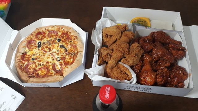 넘맛나거먹은 피자와 치킨완전갑성비갑이예요~~~~맛나용~~~
