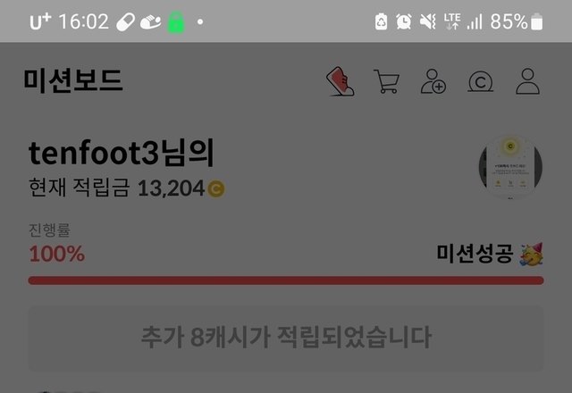 미션보드 완료하고 8캐시