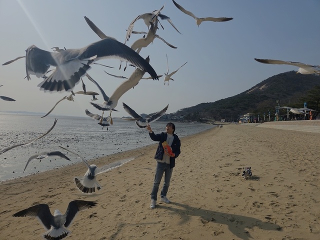 갈매기 밥 먹을때 예쁘네요