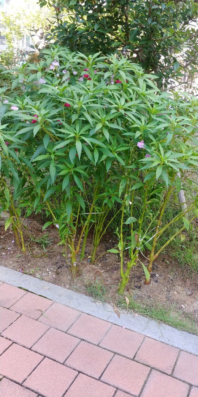 아침 산책하다가 깜짝 놀랐어요며칠전에 조그마했는데 벌써 제 어깨 정도로 자랐네요순간 봉숭아가 아니라 나무인줄... ^^;;;;;;;;
