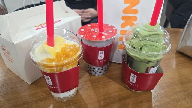 영화보러가기전 던킨도너츠.공차가서 음료준비~