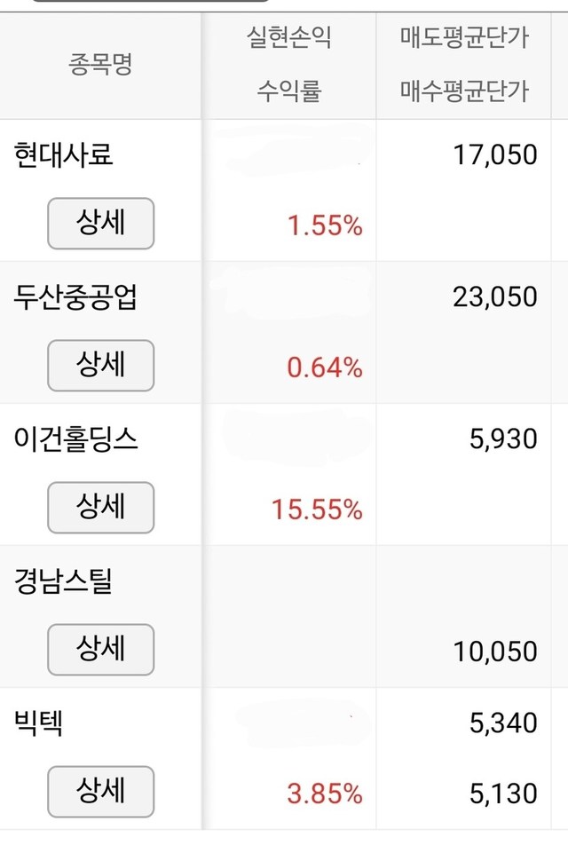 간만에 좋은 수익이 나왔네요😊😊소심하게 하긴 한다만 주식 참 어려워요;;경남스틸은 홍준표 후보 관련주 윤석열 후보가 부정적 뉴스가 많아반작용으로 상승 하지 않을까해서 조금 샀습니다^^모두 즐거운 목요일 저녁보내세요