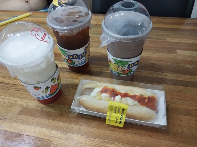 딸기어쩌구저쩌구쿠키어쩌구저쩌구아이스티그리고 핫도그빵~ 더워서 시원하게 쭉~~~~