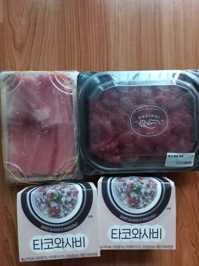 육회와 참치 오랜만에 시켜 먹네여^^