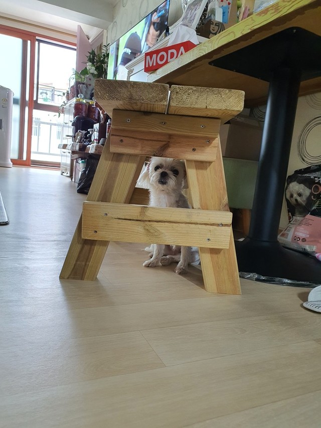 비만오면 무서워서 저리 숨어있네여~~안타까워 죽겠어여~~천둥번개까지치면 덜덜덜 떨다 난리두 아니예여~~꼬옥 안아줘야해여~~ㅎㅎ