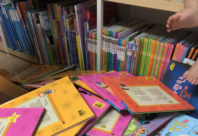 열심히 책 끄집어내고 올라가느라 매일 바쁜 우리막내…아이들 잠들면 매일 책장정리를 합니다 ㅜㅠ