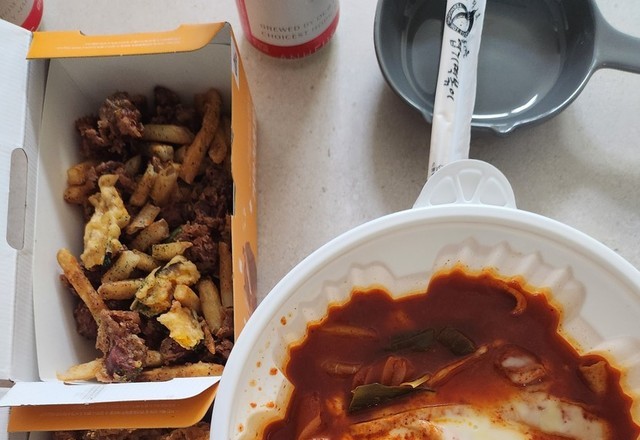 엽떡에 순살치킨에 똥집튀김까지. 푸짐푸짐~