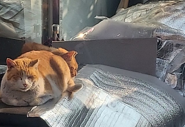 햇볕에서 비타민D 체험중인 돼지삼냥이들~~ㅋㅋ