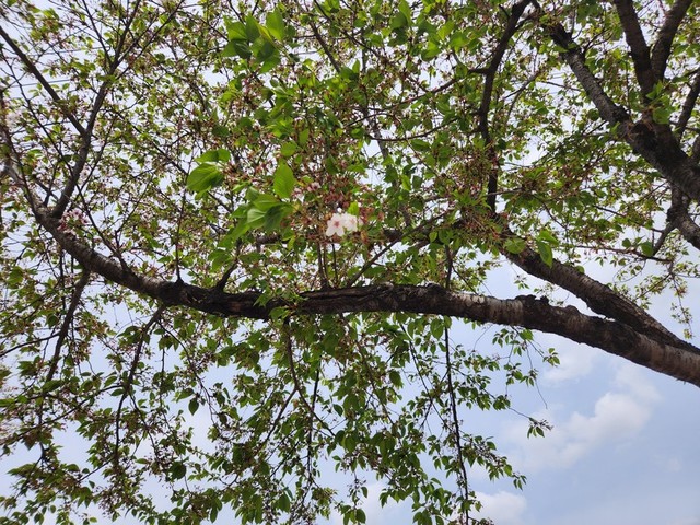 끝까지 버티는 벚꽃 한 송이
