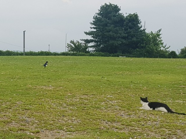 비가 그친뒤 산에 올라갔더니 사람이 많지 않네요새도 고양이도 한가롭게 노닐고그런데 고양이가 까치 보는 모양새가 예사롭지 않았어요야생 들고양이가 무섭네요!좋은하루 보내세요!
