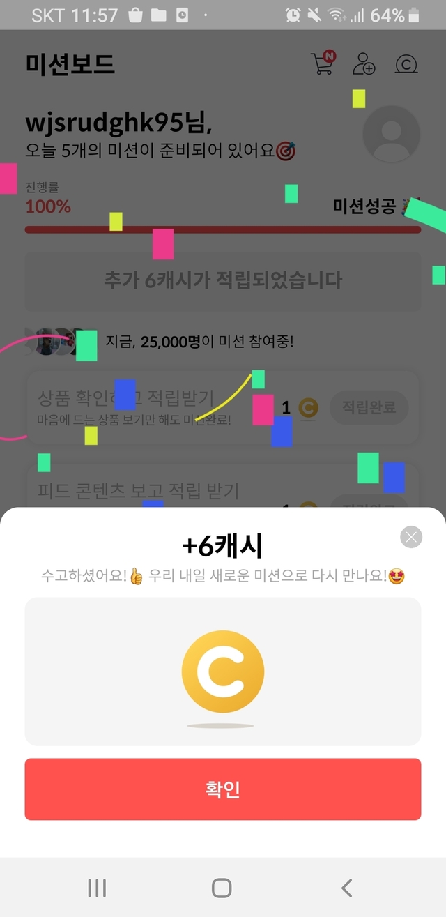 캐시 드디어 조금쌓임