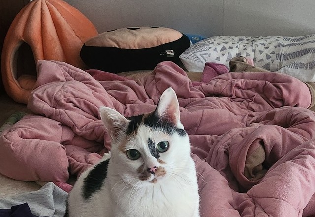 언니 이제 일하러 나가야되서 일어나야되는데 너무 곤히 자고 있는 울 냥이 조용이 움직인다고 움직였는데 어느새일어나서 살금살금 움직이는 언니 쳐다보고 있었음ㅋㅋ