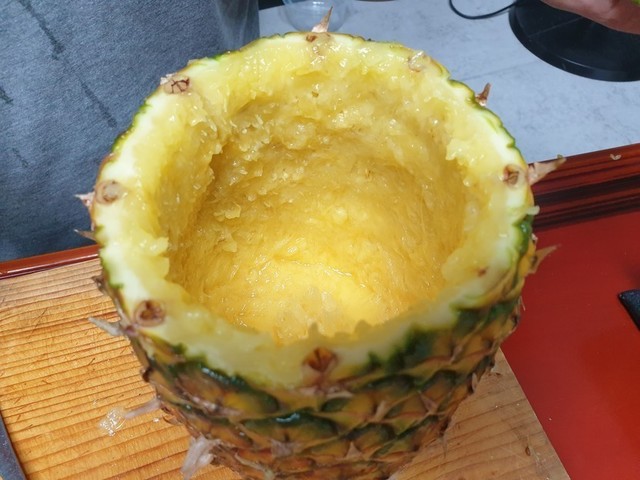 파일애플 속을 파내고~휴롬에 파인애플은 갈아주고~다시 파인애플을 컵삼아 다시 담아요~^^오늘은 세번째 만들어준날~잘 먹으니 파인애플 박스째로 사둬야할듯ㅎㅎ