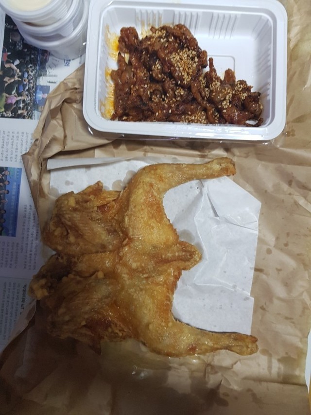 😁큰아주버님 깜짝 선물~ 미스터트롯 보며 먹으라고 치킨 배달 해 주셨네요 👍👍👍뼈 없는 닭발까지. 닭발 넘 좋아요🥰🥰🥰큰아주버님 감사하고 잘 먹었어요~~넘 맛있어요😂🤣👍👍👍🤗🤗🤗