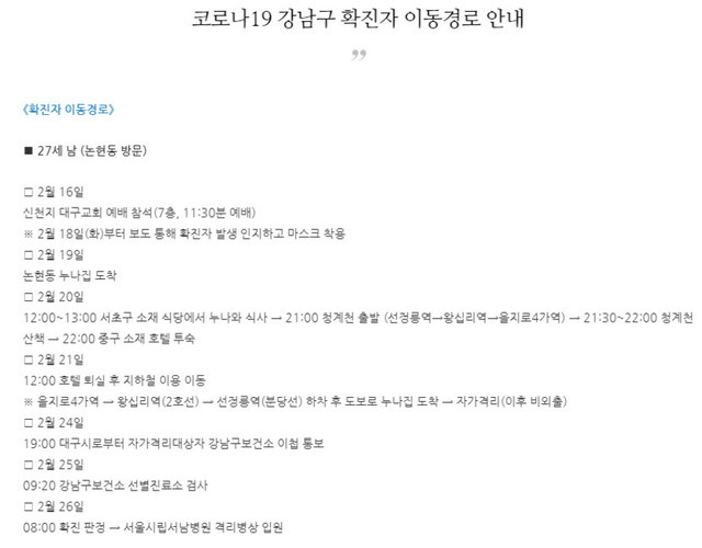 강남 코로나 확진자 이동경로래요!