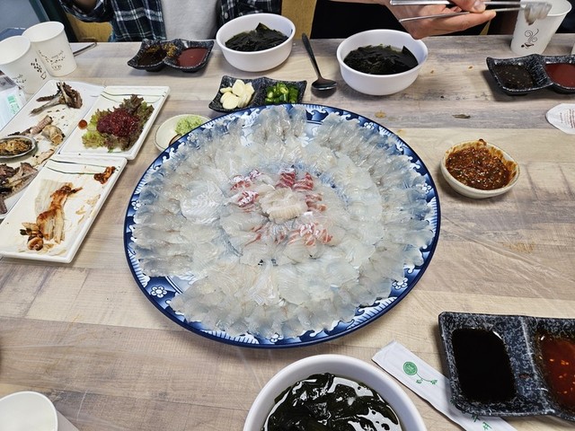 비오는날 횟집에서 가족과함께