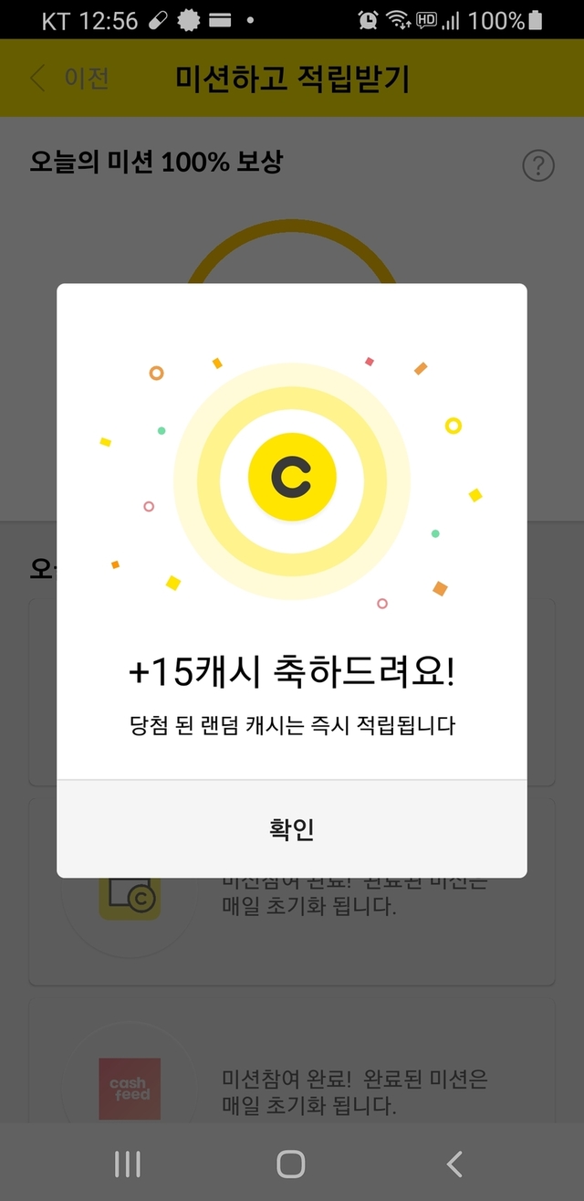 미션달성 15캐시 받았어요~