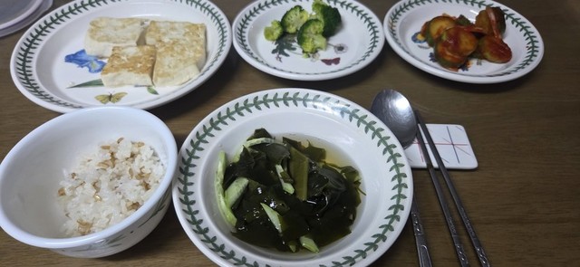 오이냉국이랑 맛난 저녁 먹었어요 🥰🥰🥰새콤새콤 맛나네요 ^^