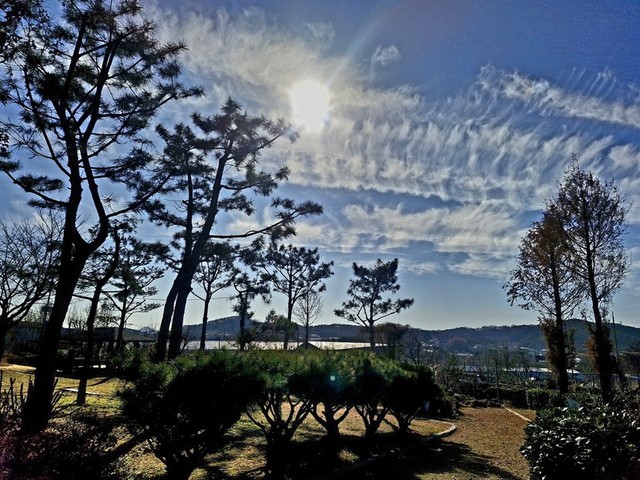 겨울 공원의 하늘과 구름