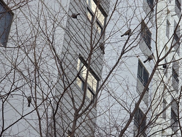 ㆍA.P.T산책 하다 새소리에 고개 들어 보니 직박구리가 친목회 하네요. 사진에 많이는 못 담겠네요. 그래도 몇장 찍어 봤어요.ㆍ아주 작은새는 아니네요.ㆍ자주 볼수 있는 텃새 입니다.ㆍㆍ저녁시간 즐겁게 보내세요.