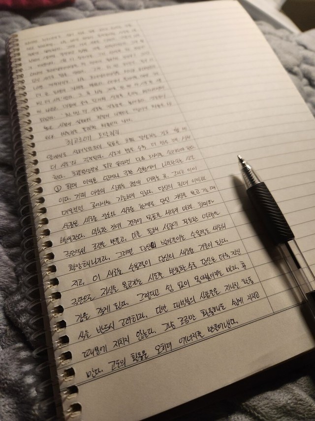 쓰기 싫어 몇번을 놓으려다 간신히 이어갑니다. 역시 나와의 싸움은 쉽지 않네요 그래도 조금씩 천천히 꾸준히 해나가려 합니다. 오늘도 화이팅하세여!