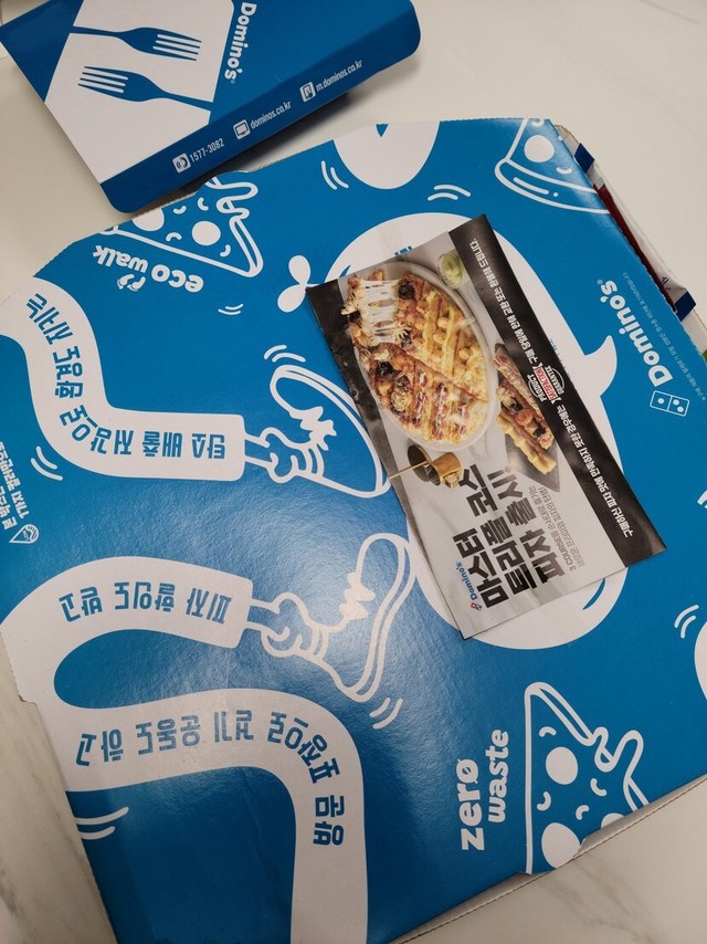 오랫만에 도미노 피자를 먹어 보아요.방문 포장에 할인이 크다 해서...퇴근길ㅇㅔ 신랑이 직접 다녀왔는데...ㅡㅅㅡ 피자는 방문포장 할인ㅇㅣ 되지만,사이드 메뉴는 비포함이라는 사실...새로 생긴건지 와사비소스.변한 도미노도 세모조각이 아닌, 네모조각.아쉬운 방문포장... 그래도 오랫만에 반가웠네~