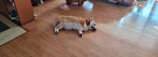 아무데나 눕는 강아지