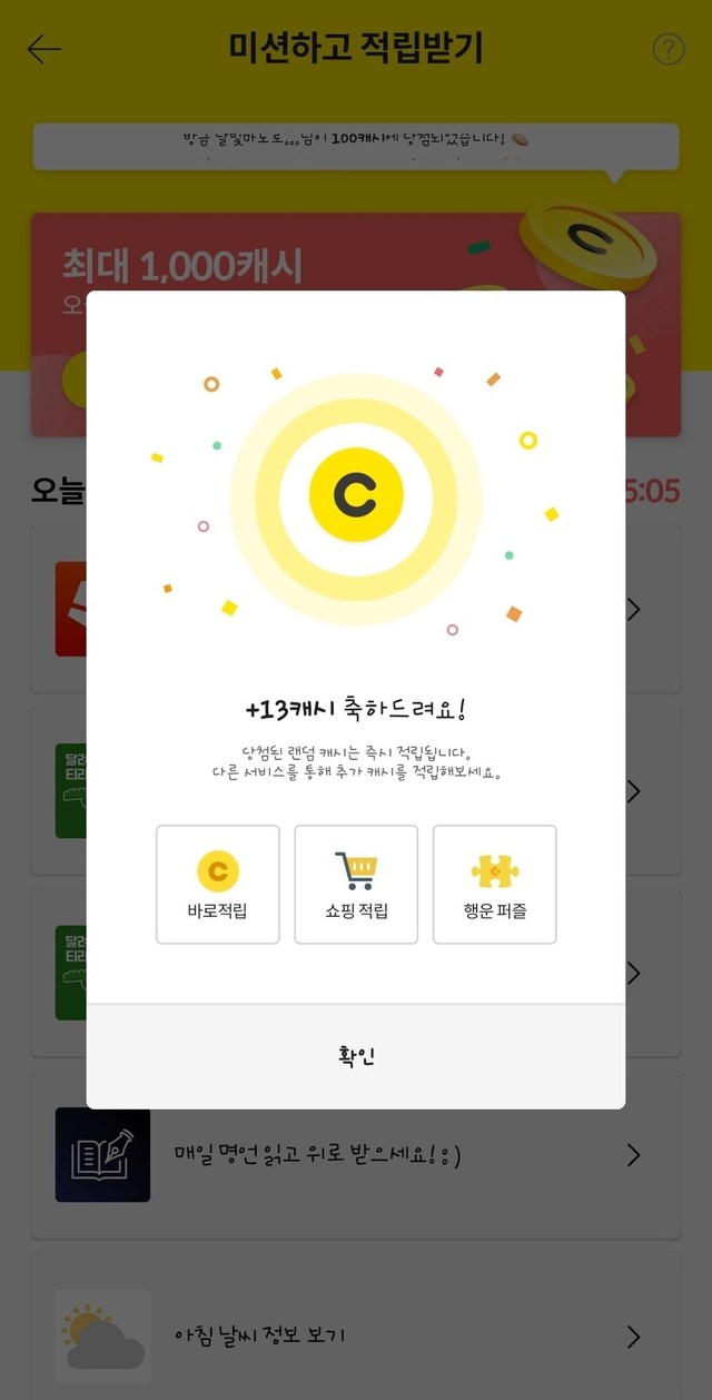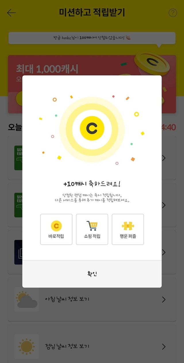 미션하고 적립 받으세요