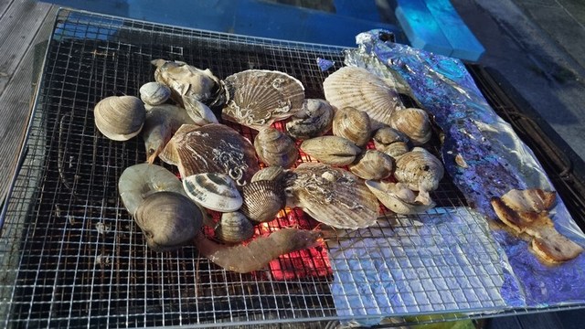 시장에서 조개랑 고기 사다가 숙소에서 바베큐하고 있어요~ 역시 야외에서 먹는건 다 맛있어요~