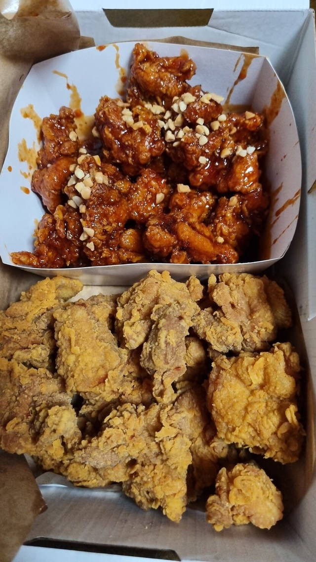 신메뉴라고 해서 먹었는데 짱 이에요ㅎ소스가 살짝 매콤~ 배달오는 중 한쪽으로쏠렸는지 만들때 소스를 한쪽만 집중적으로발랐는지 덜 발라진 곳은 밍밍 했지만주문할때 소스 듬뿍 발라 달라고 하면더 맛 있을것 같아요